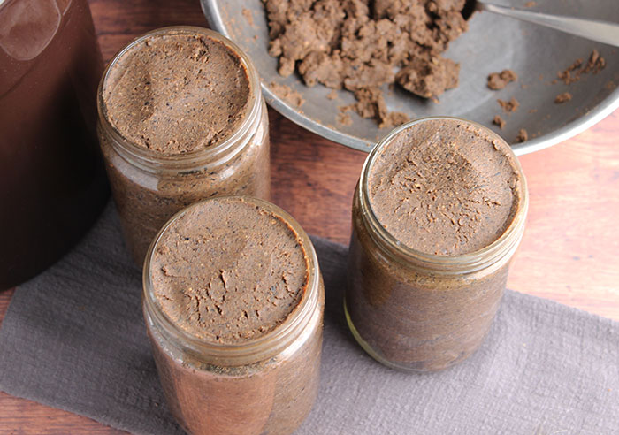 Note: One thing that we have noticed with this non-traditional variety is that it may not always breakdown completely in your final product. This in effect means that when decanting homemade miso you will notice bits of koji even though there are signs that the miso is fully aged. When researching information on this, we found that Sandor Katz, author of the Art of Fermentation, suggests puréeing the paste in a food processor before packing it for storage.